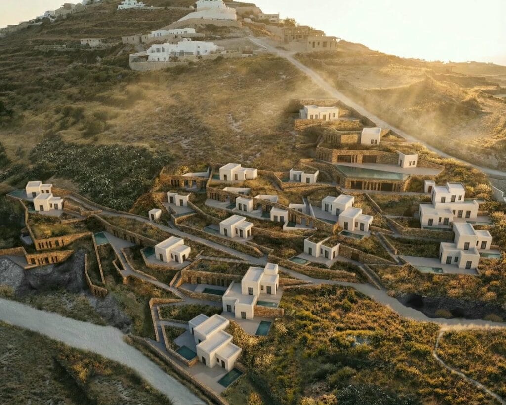 Το προτεινόμενο ξενοδοχειακό συγκρότημα διαμορφώνεται λοιπόν από ένα σύνολο μικρών ορθογωνικών όγκων που ξεπροβάλλουν μέσα από τις γραμμικές ξερολιθιές, που άλλοτε αποτελούν κτιριακό όγκο και άλλοτε απλή διαμόρφωση του περιβάλλοντος χώρου. Η πρόθεση για ένταξη στο φυσικό περιβάλλον οδήγησε στο σχεδιασμό υπόσκαφων κτισμάτων, τη δημιουργία φυτεμένων δωμάτων σε κτίρια που αναπτύσσονται υπό την μορφή γραμμικών ξερολιθιών που τελικά επικαλύπτονται από το φυσικό έδαφος λόγω της έντονης κλίσης του εδάφους, ενώ μεγάλο μέρος των κοινόχρηστων χώρων και βοηθητικών χώρων που απαιτούνται για την σωστή και εύρυθμη λειτουργία μια ξενοδοχειακής μονάδας 5 αστέρων, τοποθετήθηκαν σε υπόγειους χώρους προκειμένου να διατηρηθεί η ισορροπία μεταξύ του δομημένου και του φυσικού τοπίου.