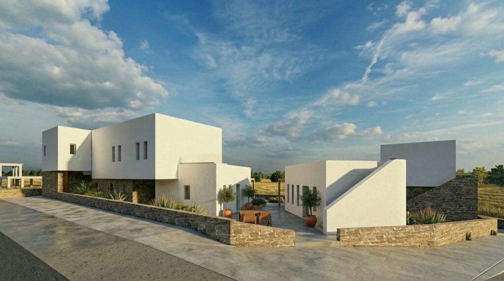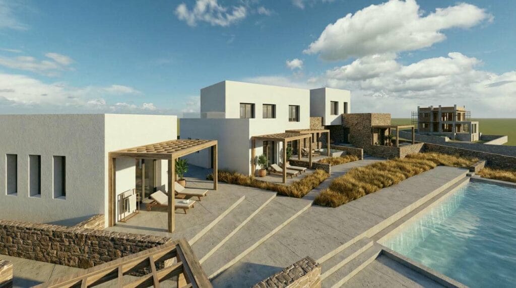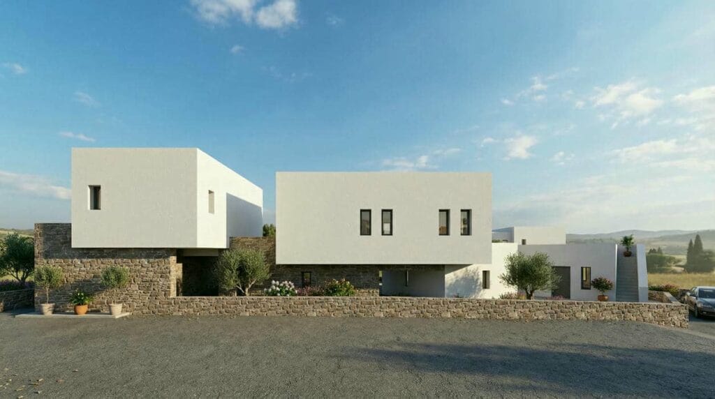Το project αφορά την ανέγερση συγκροτήματος τριών κτιρίων, που θα στεγάζουν έξι ενοικιαζόμενα διαμερίσματα και χώρο υποδοχής με υπόγειο, και κολυμβητική δεξαμενή.