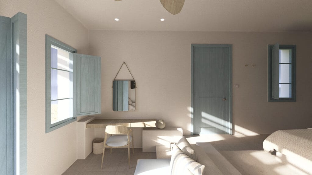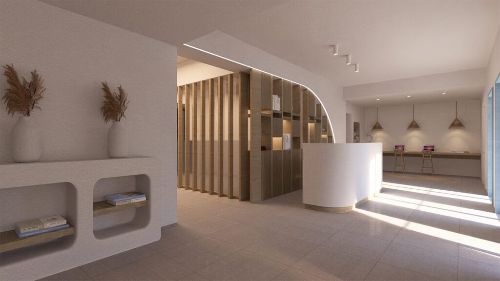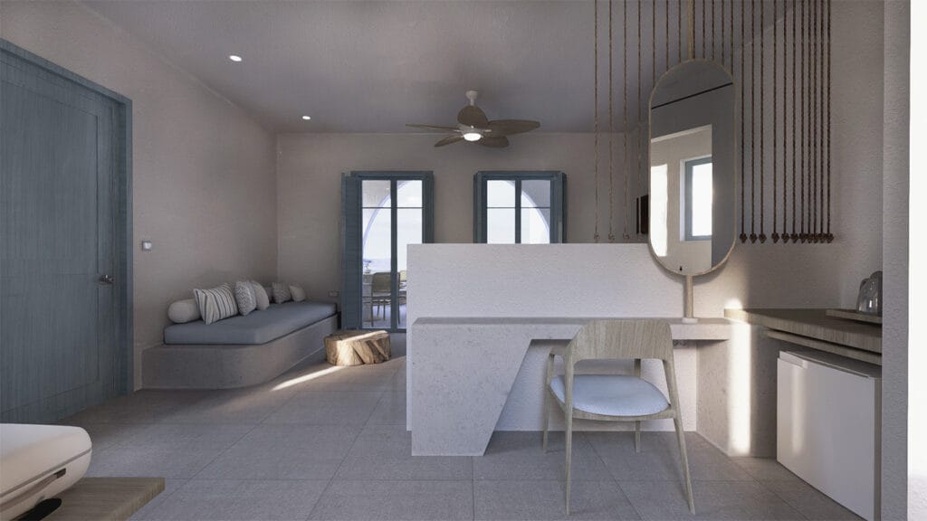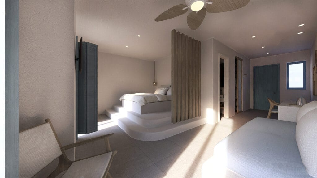 Ο σχεδιασμός βασίζεται στη χρήση φυσικών υλικών και σύγχρονων κατασκευαστικών λύσεων, με στόχο τη δημιουργία ενός ξενοδοχειακού συγκροτήματος υψηλής αισθητικής και λειτουργικότητας, πλήρως εναρμονισμένου με το περιβάλλον, τον πολιτισμό και την ταυτότητα του τόπου.
