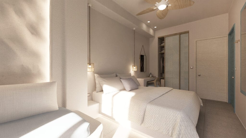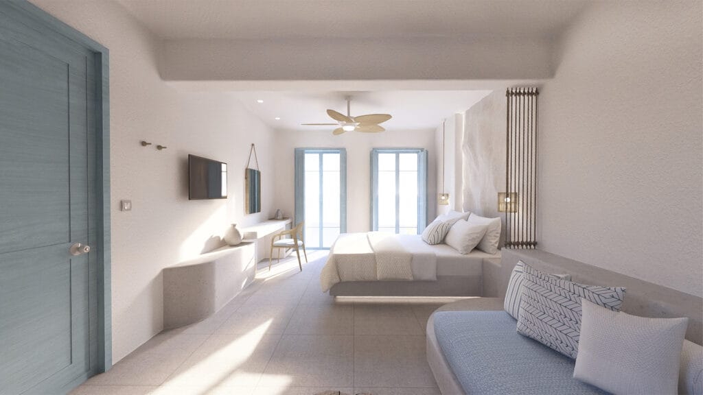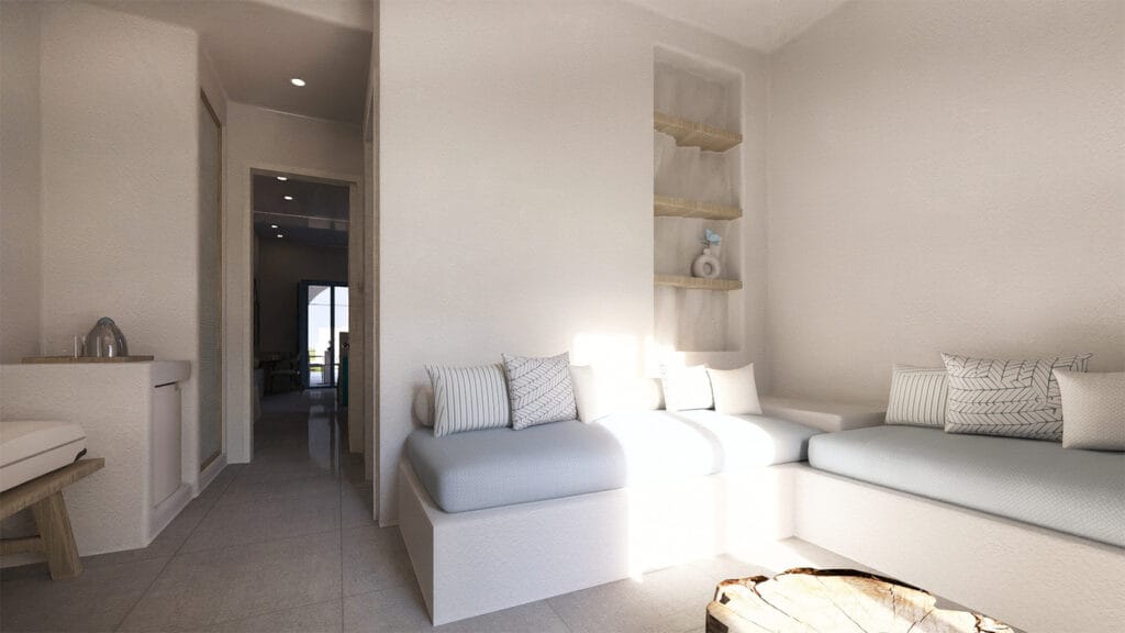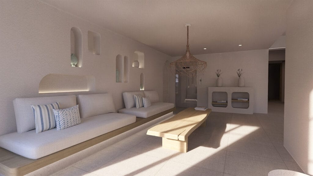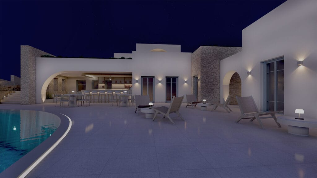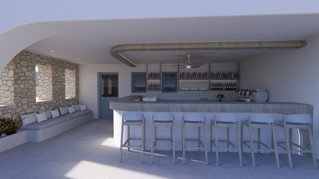 Η σχεδιαστική προσέγγιση αντλεί έμπνευση από τον μύθο της νύμφης Καλυψώς, δημιουργώντας μια αρχιτεκτονική αφήγηση που συνδέει το υφιστάμενο με το νέο. Στόχος είναι η ενοποίηση των όγκων, η διατήρηση της συνέχειας της θέας προς τη θάλασσα, και η ένταξη στο κυκλαδίτικο τοπίο με σεβασμό στον ιδιαίτερο χαρακτήρα και την αρχιτεκτονική φυσιογνωμία της περιοχής.