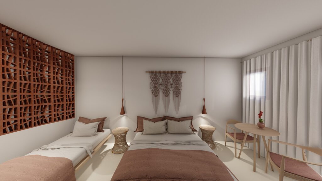 Η ΜORPHÓ ανέλαβε τον αρχιτεκτονικό σχεδιασμό, το interior και exterior design, τη μελέτη εφαρμογής καθώς και τον τεχνικό φάκελο του μηχανικού για την ένταξη του ξενοδοχείου στο επενδυτικό πρόγραμμα.
