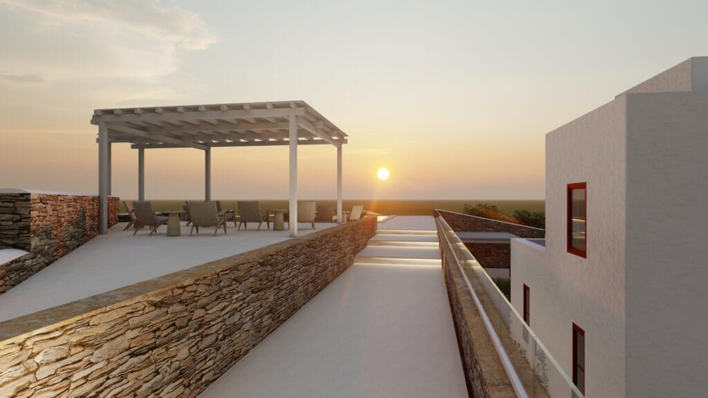Το project αφορά τον εκσυγχρονισμό και την ενεργειακή αναβάθμιση υφιστάμενου τουριστικού καταλύματος, στη Βρύση της Μυκόνου.
