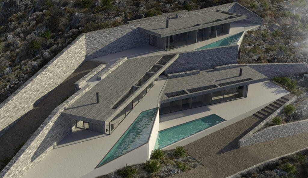Στην περιοχή “Καστέλι” στην Κάλυμνο «στο νησί των σφουγγαράδων» που είναι γεμάτη από μαγικές παραλίες και καταπληκτικά βραχώδη τοπία, η αρχιτεκτονική ομάδα της Μοrphό έχει σχεδιάσει τρεις ανεξάρτητες πολυτελής κατοικίες υψηλών σχεδιαστικών προδιαγραφών.