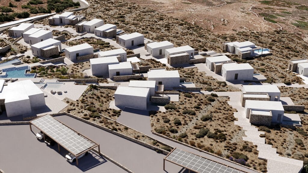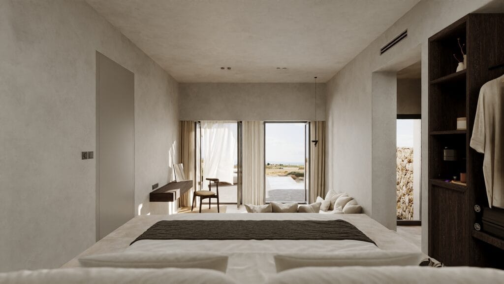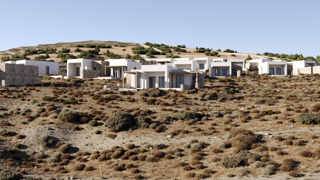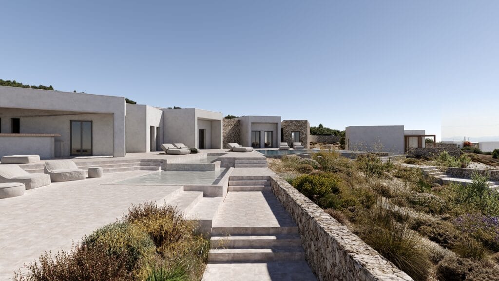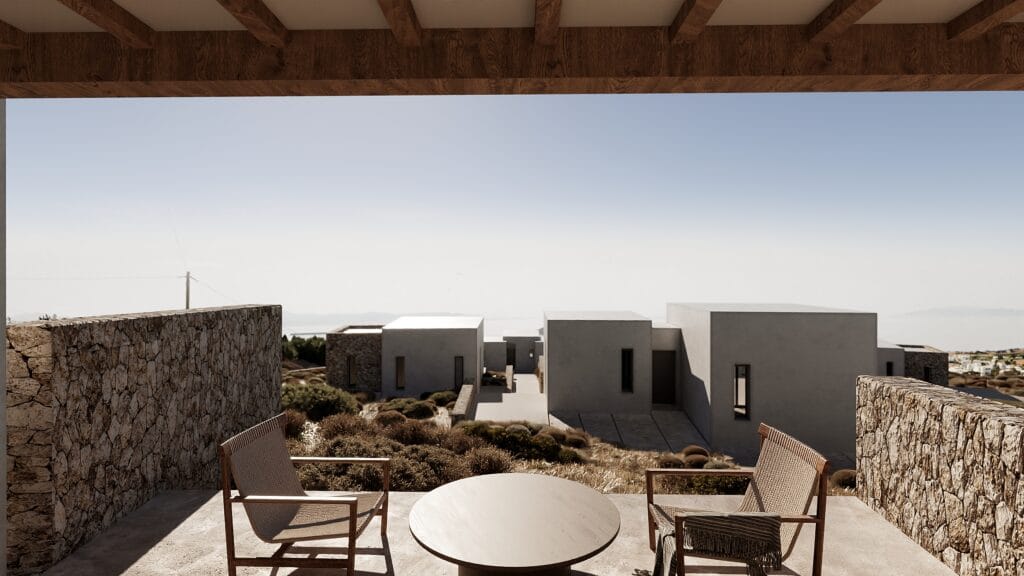Οι ανεξάρτητοι αρχιτεκτονικοί όγκοι διατηρούν μικρή, ανθρώπινη κλίμακα και εντάσσονται διακριτικά στο περιβάλλον, διαμορφώνοντας ένα σύγχρονο ξενοδοχειακό καταφύγιο που συνομιλεί με την ιστορία, τη γεωγραφία και τη μνήμη του τόπου.
